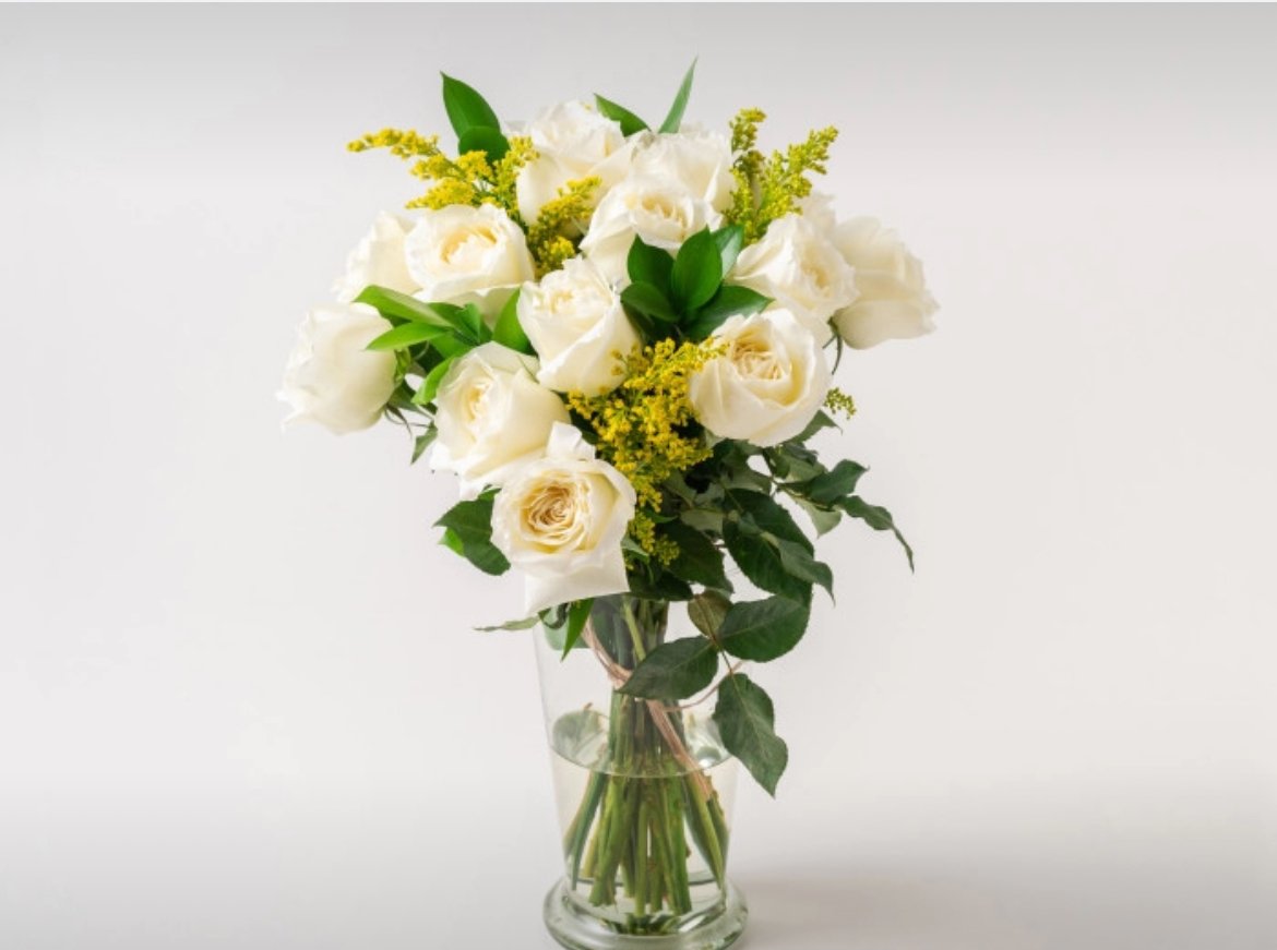 Arranjo de 15 Rosas Brancas em Vaso quantidade