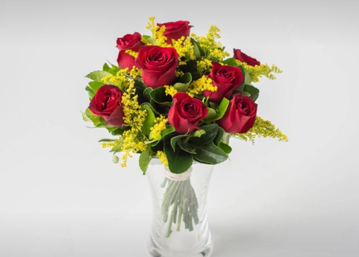 Arranjo de 8 Rosas Vermelhas em Vaso