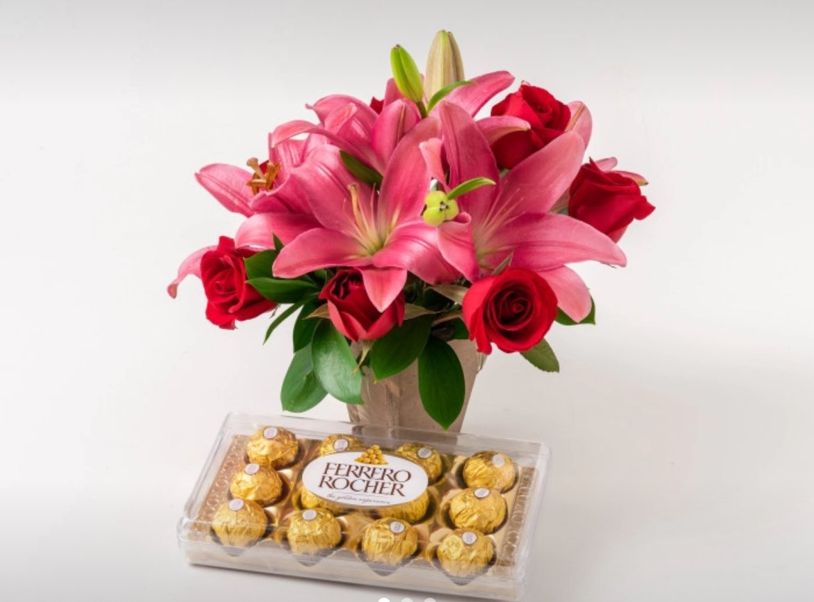 Arranjo Flores Rosas Lindas Vaso Prata 30x25cm