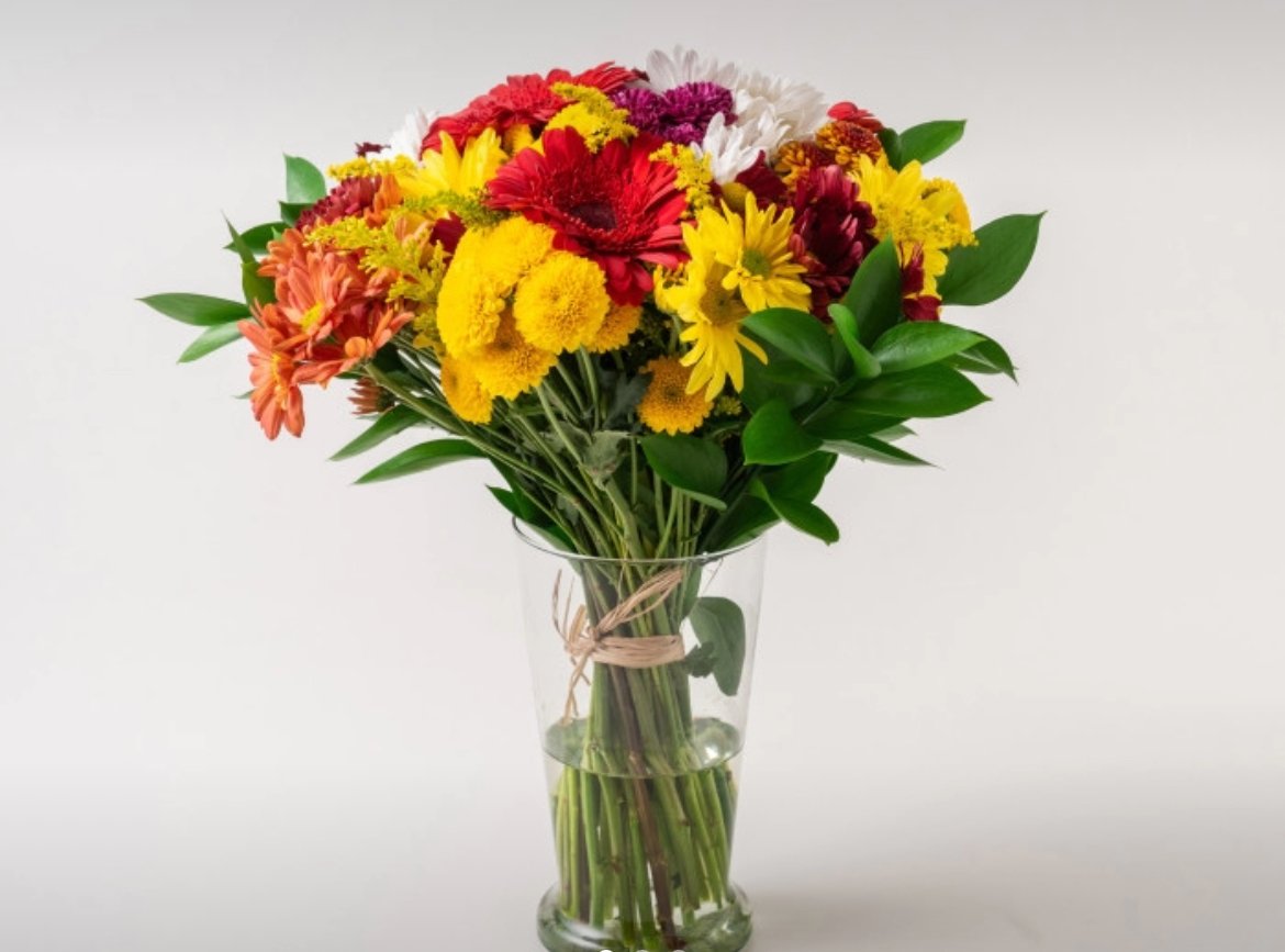 Arranjo Grande de Flores do Campo Coloridas em Vaso