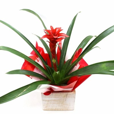 Bromelia no cachepot de madeira